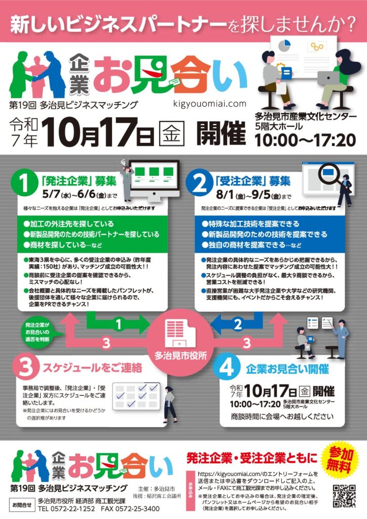 【9/5㈮締切】第19回 多治見ビジネスマッチング『企業お見合い』の参加受注企業を募集します!