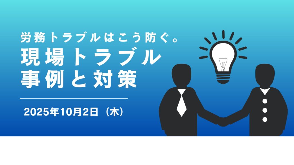 ✏️【10/2(木)】労務トラブルはこう防ぐ。現場のトラブル事例と対策を開催します