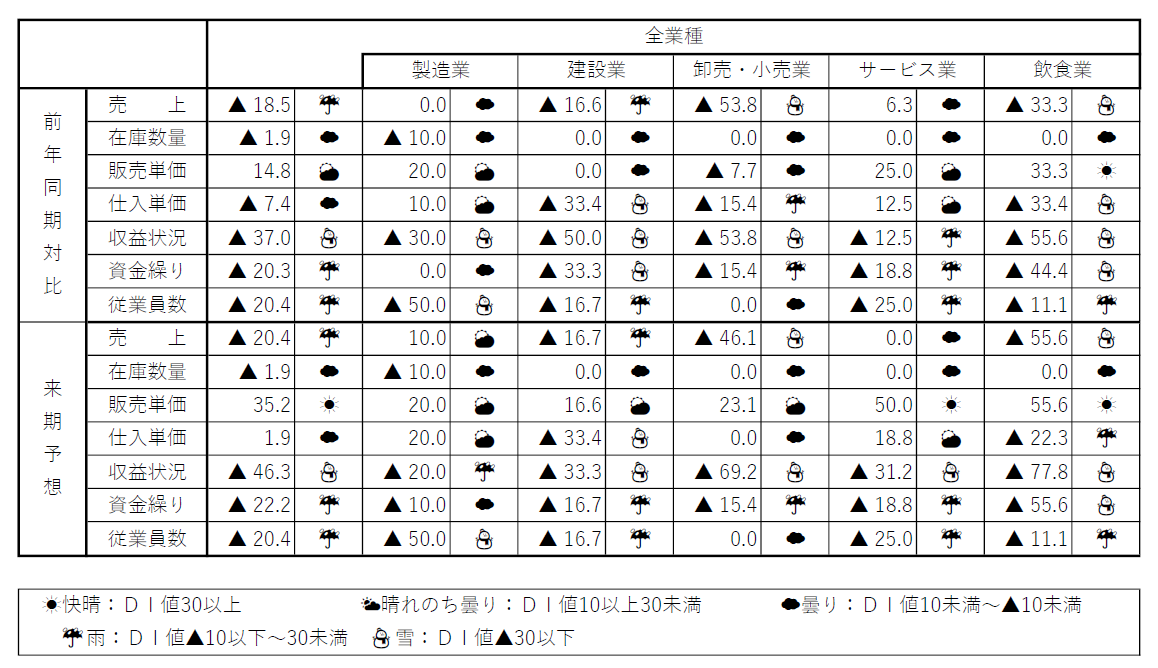 | 資金繰り | ▲33.3 | ▲20.3 | ▲22.2 |